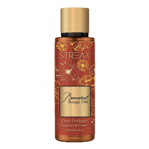 بادی اسپلش استریکس رایحه باکارات رژ عطری مدرن، جذاب و خاص با طبعی گرم و تند برای خانم ها و آقایان ، مناسب برای فصول سرد و خنک که شروعی شیرین و وهم انگیز از بوی زعفران و بادام تلخ را برای شما به ارمغان میاورد. بعد از گذشت زمان شما را در بوی سدر و یاسمن آفریقایی غرق میکند و پایانی خیره کننده مملو از بوی کهربا و مشک و نت های چوبی را تجربه میکنید.