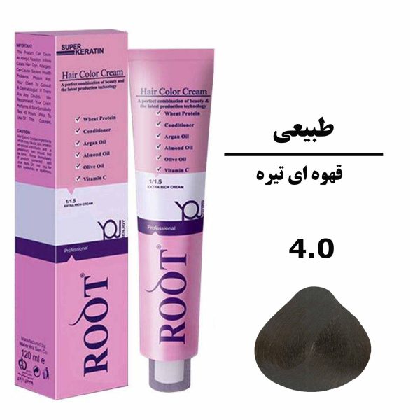 رنگ موی قهوه ای تیره روت ROOT سری طبیعی شماره 4.0 حجم 120 میلی لیتر