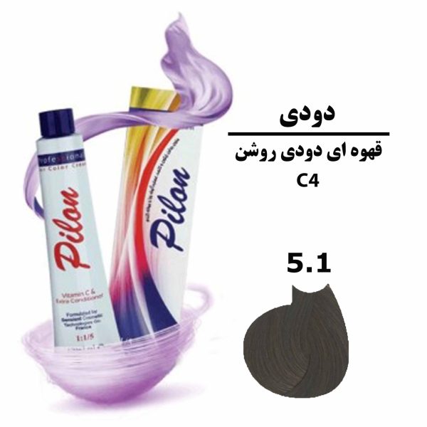 رنگ موی قهوه ای دودی روشن پیلون PILON سری دودی C4 شماره 5.1 حجم 120 میلی لیتر
