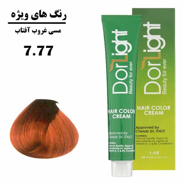 رنگ مو مسی غروب آفتاب دورلایت حاوی روغن های مغذی مو از جمله آرگان، زیتون، جوجوبا و ماکادمیا می باشد.