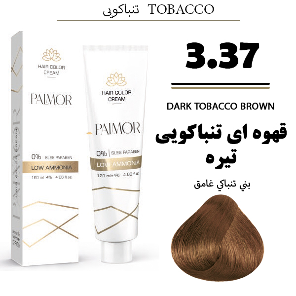 رنگ موی پالمور شماره 3.37 حجم 120 میلی لیتر رنگ قهوهای تنباکویی تیره