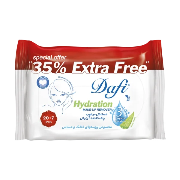 یکی از راههای مراقبت از پوست و داشتن پوستی زیبا و شفاف، پاک کردن آن از مواد آرایشی و آلودگیهای روزمره است. دستمال مرطوب پاککننده آرایش دافی یک پاککننده مواد آرایشی ضد آب، مرطوبکننده و تغذیهکننده پوست بوده و به همین جهت نام آن را سه در یک اختصاص دادهاند. این محصول حاوی مواد مغذی، عصارههای آلوئهورا، بابونه، لیمو و خیار بوده که سبب حفظ لطافت و شفافیت پوست میشوند. از نکات بسیار مثبت در تولید این دستمال معطر میتوان به فاقد الکل، پارابن و صابون بودن آن نیز اشاره کرد.