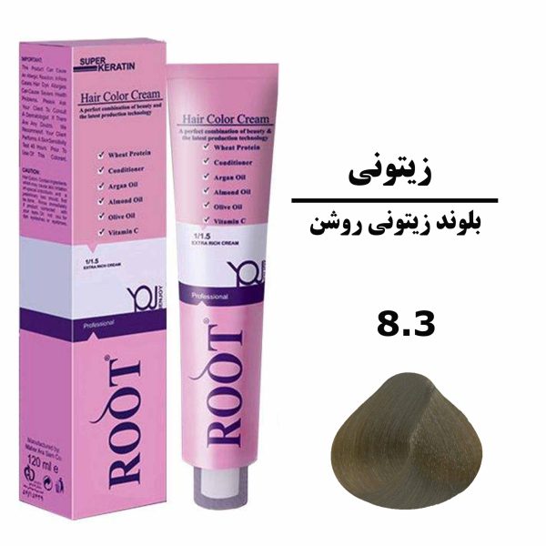 رنگ موی بلوند زیتونی روشن روت ROOT سری زیتونی شماره 8.3 حجم 120 میلی لیتر