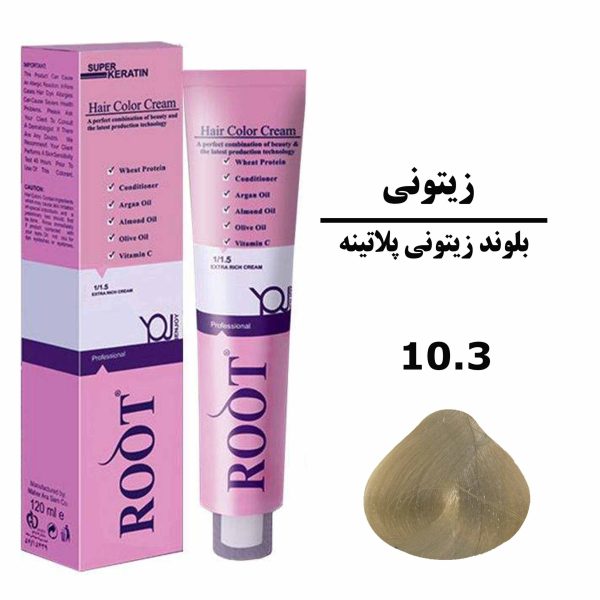 رنگ موی بلوند زیتونی پلاتینه روت ROOT سری زیتونی شماره 10.3 حجم 120 میلی لیتر