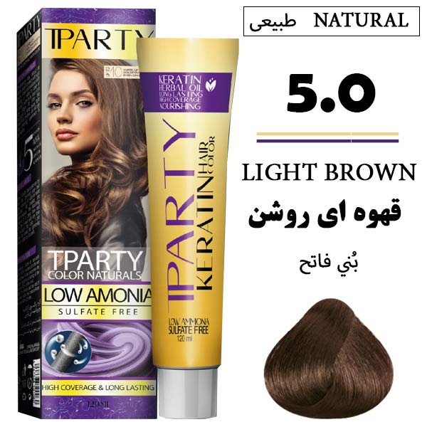 رنگ مو تیپارتی کم آمونیاک 5.0 قهوه ای روشن حجم 120 میل