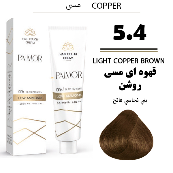 رنگ موی پالمور شماره 5.4 حجم 120 میلی لیتر رنگ قهوه‌ای مسی روشن