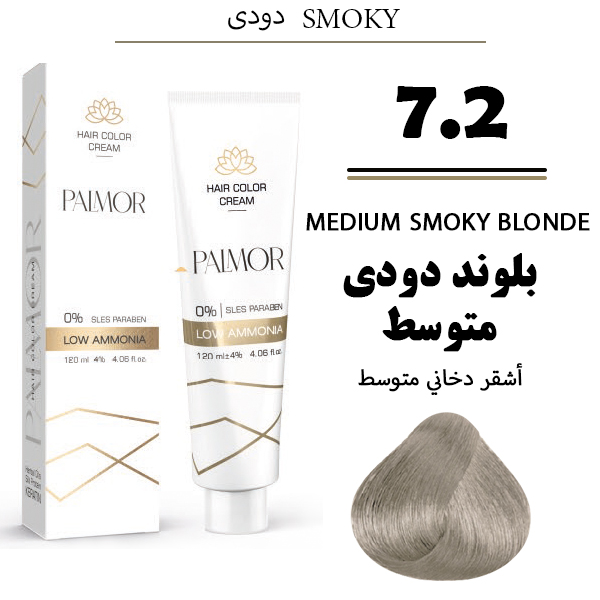 رنگ موی پالمور شماره 7.2 حجم 120 میلی لیتر رنگ بلوند دودی متوسط