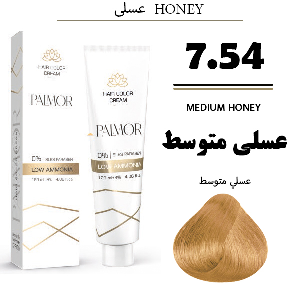 رنگ موی پالمور شماره 7.54 حجم 120 میلی لیتر رنگ عسلی متوسط