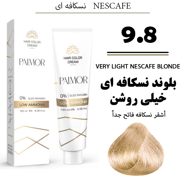 رنگ موی پالمور شماره 9.8 حجم 120 میلی لیتر رنگ بلوند نسکافهای خیلی روشن