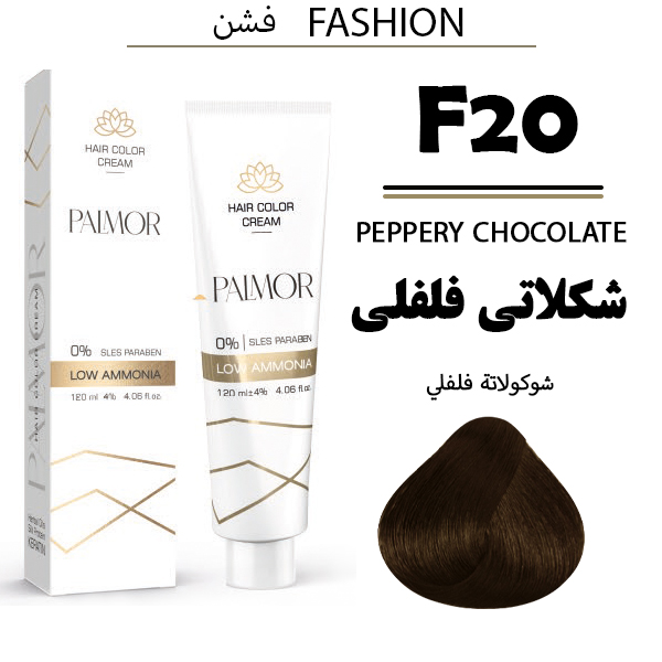 رنگ موی پالمور شماره F20 حجم 120 میلی لیتر رنگ شکلاتی فلفلی