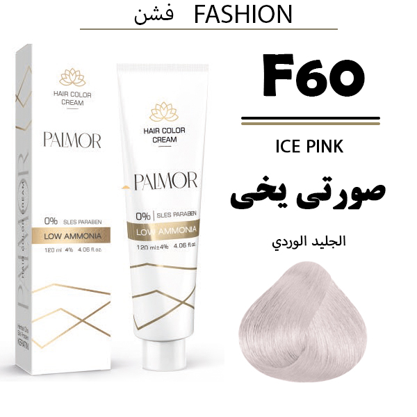رنگ موی پالمور شماره F60 حجم 120 میلی لیتر رنگ صورتی یخی