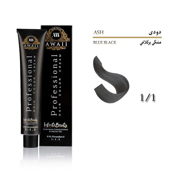 رنگ مو آوایی شماره 1.1 حجم 120 میل رنگ مشکی پرکلاغی Awaii