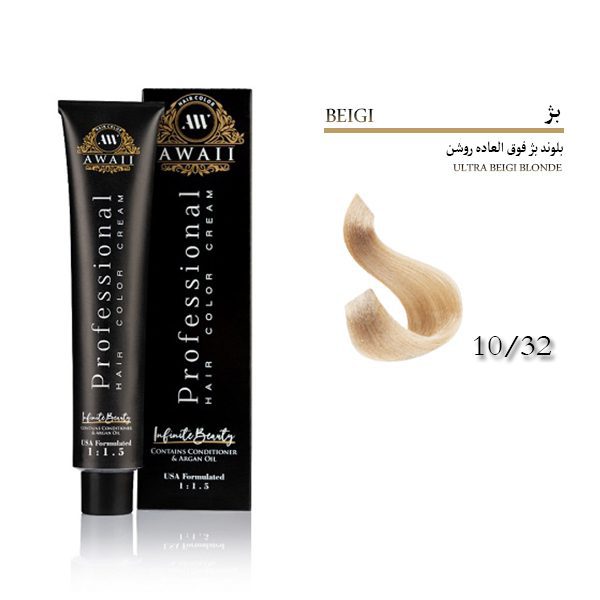 رنگ مو آوایی شماره 10.32 حجم 120 میل رنگ بلوند بژ فوق العاده روشن Awaii
