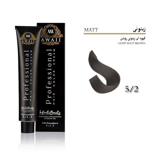 رنگ مو آوایی شماره 5.2 حجم 120 میل رنگ قهوه ای زیتونی روشن Awaii