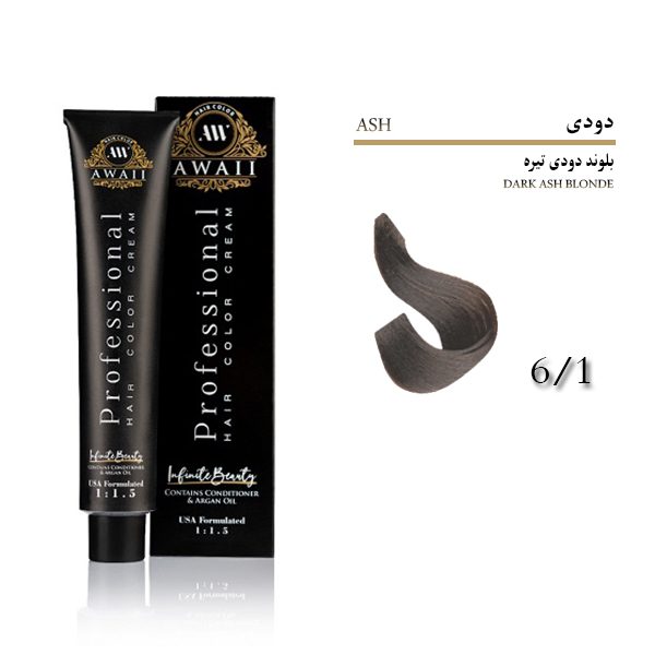رنگ مو آوایی شماره 6.1 حجم 120 میل رنگ بلوند دودی تیره Awaii