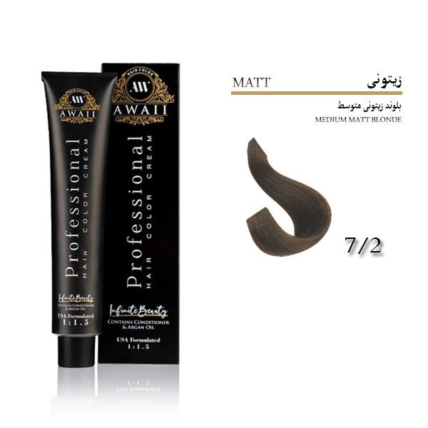 رنگ مو آوایی شماره 7.2 حجم 120 میل رنگ بلوند زیتونی متوسط Awaii