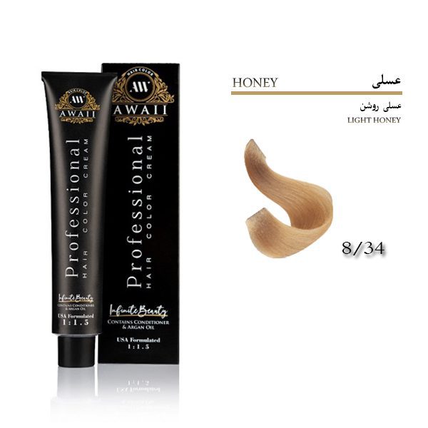 رنگ مو آوایی شماره 8.34 حجم 120 میل رنگ عسلی روشن Awaii