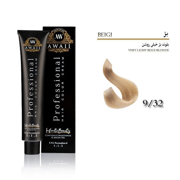 رنگ مو آوایی شماره 9.32 حجم 120 میل رنگ بلوند بژ خیلی روشن Awaii