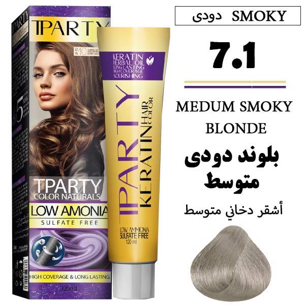 رنگ مو تیپارتی بلوند دودی متوسط 7.1 روشن، سرد و بدون زردی