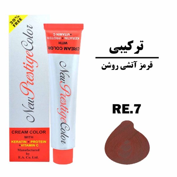 رنگ مو قرمز آتشی روشن نیو پرستیژ کالر سری ترکیبی شماره RE.7 حجم 120 میلی لیتر