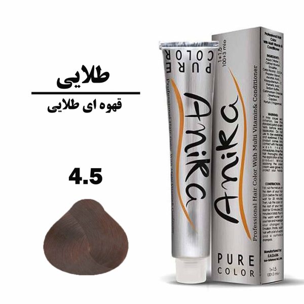 رنگ مو قهوه ای طلایی آنیکا ANIKA سری طلایی شماره 4.5 حجم 100 میلی لیتر