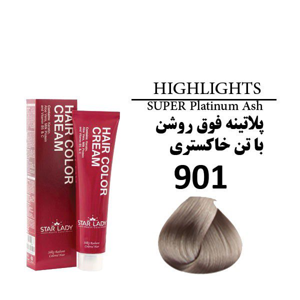 رنگ موی پلاتینه فوق روشن با تن خاکستری استار لیدی با براقیت و شاین عالی و با میزان آمونیاک بسیار پایین می باشد.