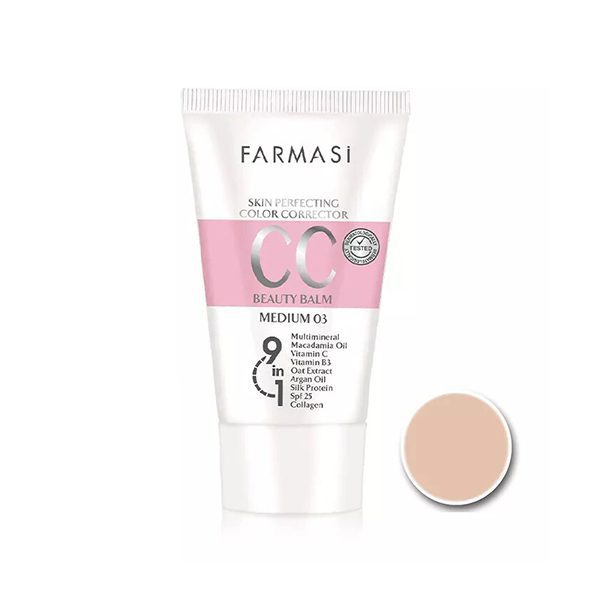 سی سی کرم فارماسی رنگ بژ طبیعی (Medium 03) با spf15 برای استفاده تمامی پوست ها طراحی شده