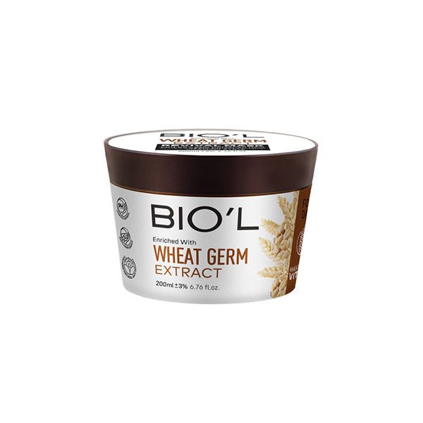 ماسک موی بیول حاوی عصاره جوانه گندم که ویتامین های A ، B ، E و املاح معدنی منیزیم و سلنیوم را در بر دارد.